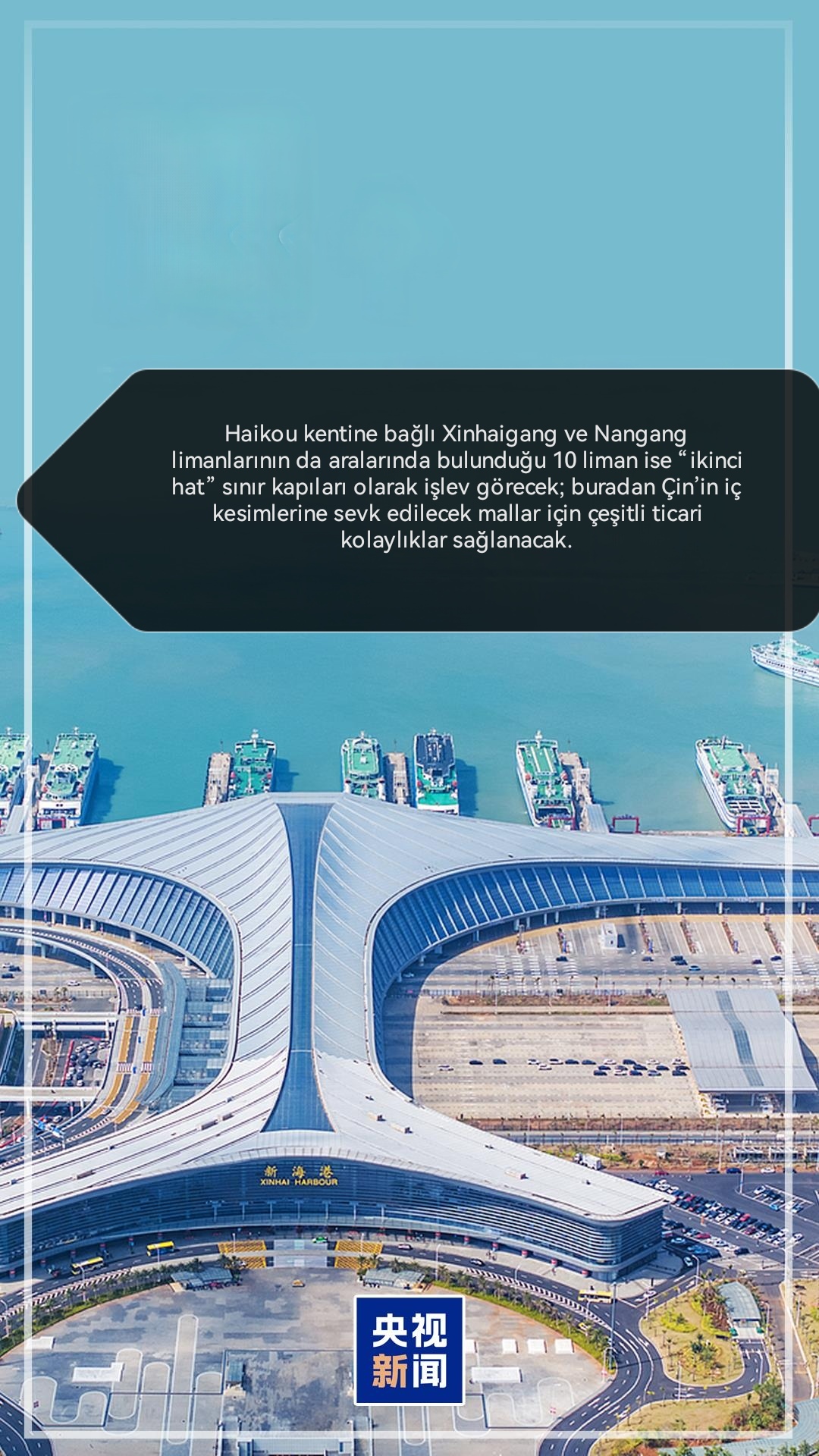 Haikou kentine bağlı Xinhaigang ve Nangang limanlarının da aralarında bulunduğu 10 liman ise “ikinci hat” sınır kapıları olarak işlev görecek; buradan Çin’in iç kesimlerine sevk edilecek mallar için çeşitli ticari kolaylıklar sağlanacak.